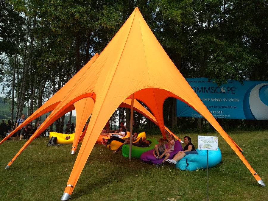 - Stan 2 - jehlan ve tvaru chobotnice - 10m, oranžový, s možností přidělání bočnic. Cena pronájmu - 5000 Kč/den